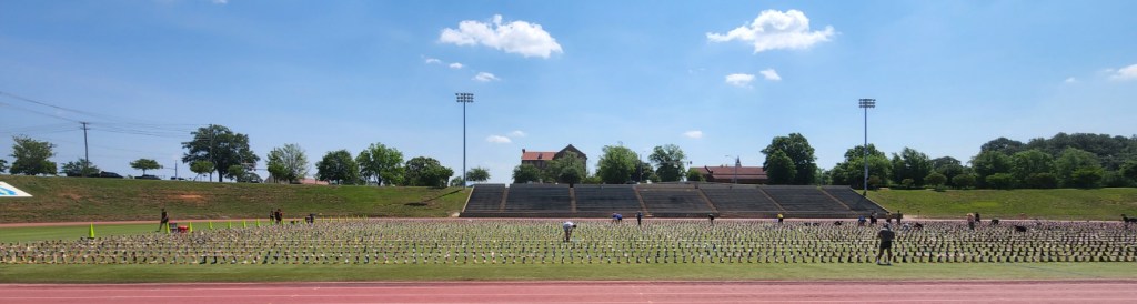 7500 boots that fill a football field in Hedrick Stadium on Fort Bragg. 7500 Service Members who “have died during the 9/11 terrorist attacks or as a result of conflicts or personal battles that followed”. 7500 families forever changed. The number is 7500 according to the event organizing committee, though I was unable to find information on how that number was reached.