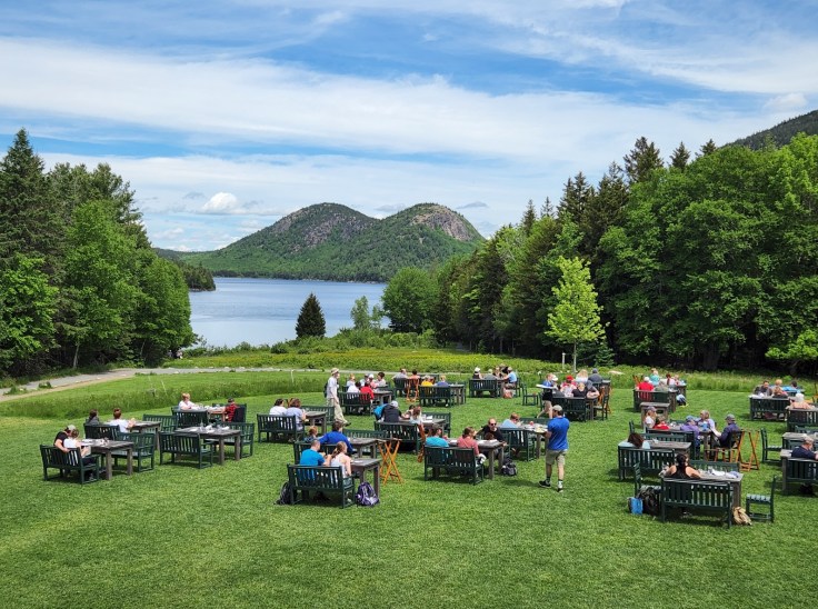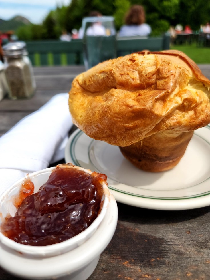 Jordan Pond House sits on a hill overlooking the pond and has been a fixture in the area since 1893. Though the original house burned down, the replacement continues the tradition of tea and popovers. I’m not much for tea, but I certainly partook in a popover with my lunch!