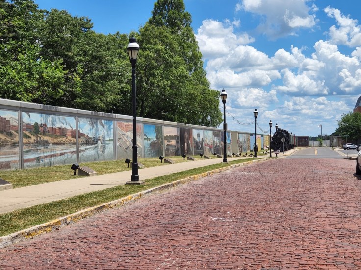I decided to do a little sightseeing while in Paducah and visited the National Quilt Museum and the Flood Wall Murals. The sunset over the Ohio River was stunning and I marveled over how much it highlighted the bridge in Brookport. I had no idea that I would be up close and personal with it the very next day! I’m still alive and have yet another great experience to add to the collection 🙂