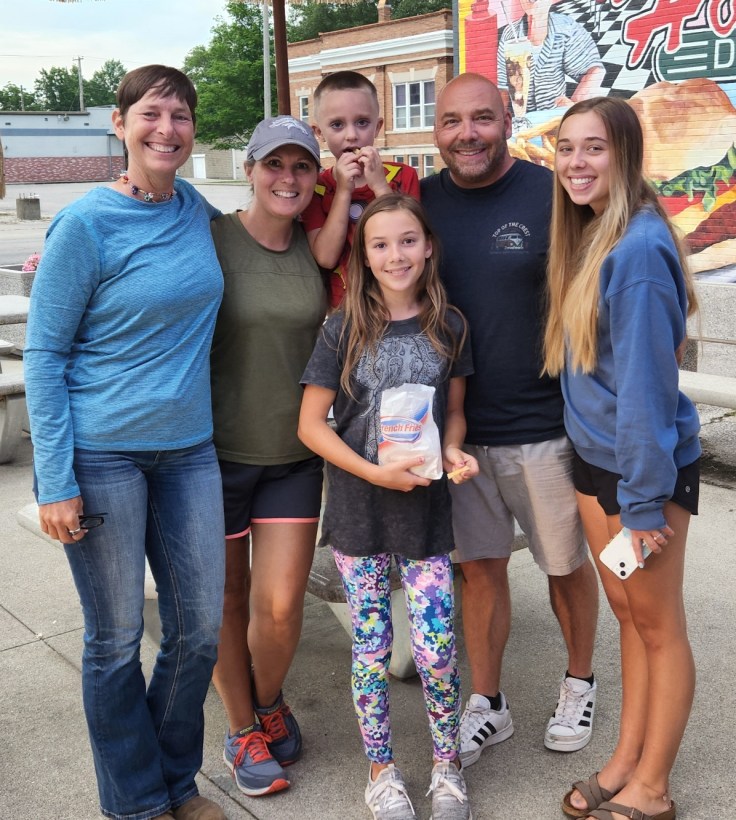 The place Mike and his wife Deana now call home, Albion, is a small farming town where her family is from.  My GPS took me on a scenic tour of half paved-half gravel roads through corn fields to get to their house – that’s what I get for opting out of highways in route options :-/  A rough ride, but so much beautiful, open farmland!  Once I got my rig safely stashed at their house and got settled into the guest room, I piled into the van with the whole family and we took a field trip to Chilly Willy’s Ice Creams and Grill in Olney, IL.  I got the s’mores williwaw (frozen custard, mini marshmallows and cream, hot fudge, and graham cracker crunch blended together). Delicious!  I have an app on my phone called Atlas Obscura that finds “curious and wondrous travel destinations.”  Interestingly, Chilly Willy’s williwaws didn’t show up for this area, but Olney’s mysterious white squirrels did!  And no, I didn’t see any of the ivory rodents, but I was assured that they are actually still around 🙂