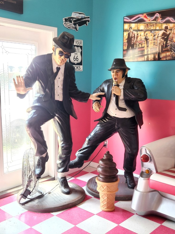 Twistee Treat Diner, in the same building as the Pink Elephant Antique Mall, had 50s diner decor and the Blues Brothers performing in the corner. The burger and fries there weren’t half bad.