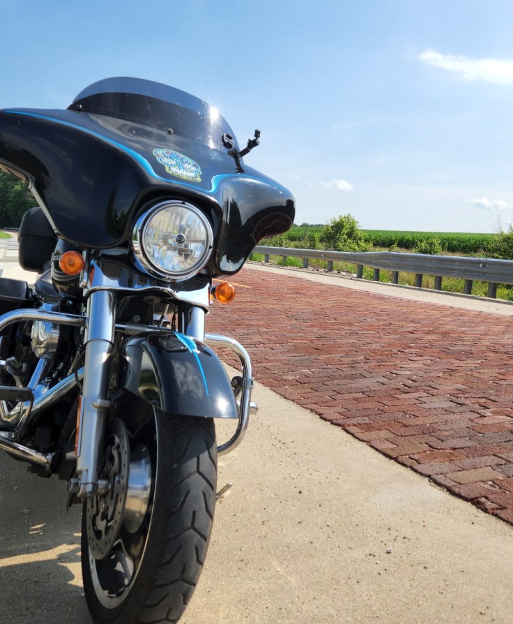 Snell and Curran Roads make up a little over a mile of an old section of Route 66 that now runs through corn fields. VisitSpringieldIllinois.com has a great rundown of Illinois specific Route 66 sites and has this to say about the historic brick road: “The restored hand-laid brick road is a segment of the original Route 66, completed in 1931 and placed over a concrete roadbed.” Given how truly awful Illinois back roads have been, I was dumbfounded at how well preserved this section of road is, especially considering heavy farm equipment must have to travel it, given its proximity to cornfields. A little out out of the way, but definitely worth the effort to see, and ride, it.
