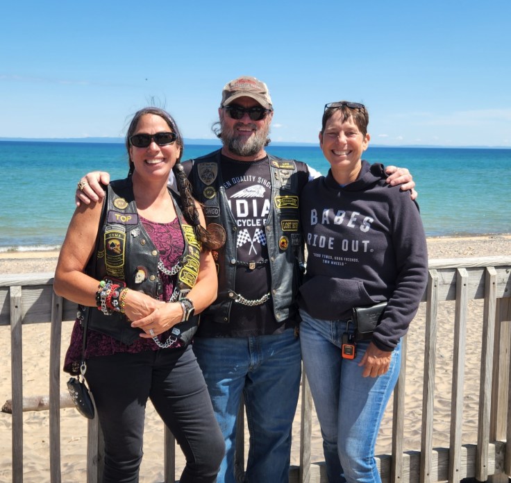 After touring the sites, I sat outside the gift shop eating a snack, when I heard “Hey look, it’s Sunshine!!” I look up and see Top and Mongo, from the hotel in St. Ignace, with a few friends in tow. Even though we had just met a couple days before, it was like running into long-lost friends! They saw my rig in the parking lot, so parked next to it and figured they’d run into me. We caught up a bit and then all walked down to the dock to take in the unbelievably beautiful lakeshore. It’s so awesome when you just click with folks on your travels, and then run into them again down the road!