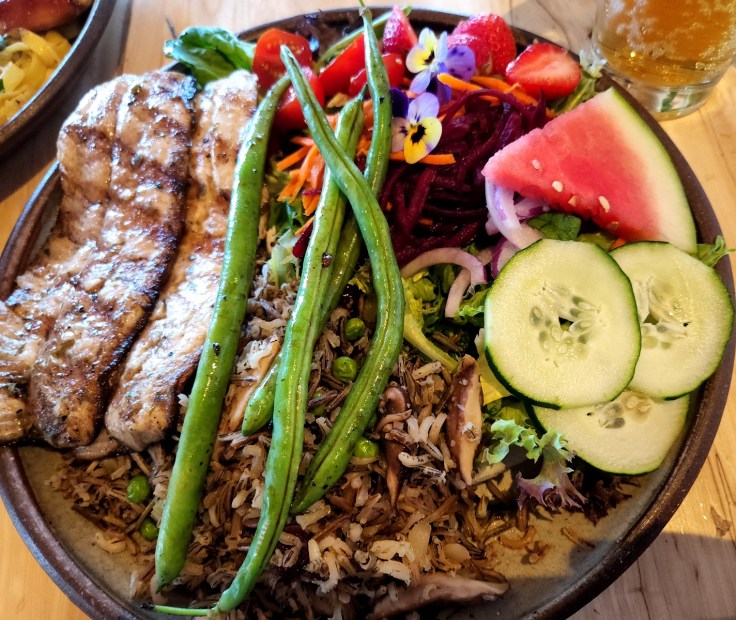 Angry Trout meal: fresh catch of the day, herring, with Minnesota North Shore wild rice and salad. They also had specialty sodas- the cream maple soda was so smooth and tasty. It’s been really hard to eat healthy on this trip- salads typically show up as wilted iceberg lettuce, croutons, and shredded cheddar cheese, if salad or vegetables are even offered at all. So, this dish was a real treat, and was one of the best meals of the trip by far!