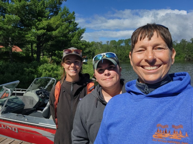 At the beginning of the year, I purchased a National Parks passport and have been getting stamps for each National Park unit at its visitors center. The most unique way to get a stamp yet was by pulling up to the Voyageur National Park Ash River Visitor Center by boat! Emily and Missy were good sports and allowed time for the visitor center stop on our tour for me. I’m so bummed that I didn’t get a pic of the visitor center sign at the dock, so here’s a selfie of me and Missy riding in the boat 🙂