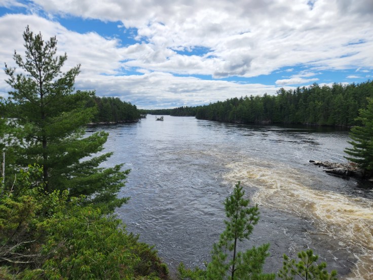 Standing on the platform at Kettle Falls, I am actually on the Kabetogama Peninsula of the U.S., looking south to Canada!