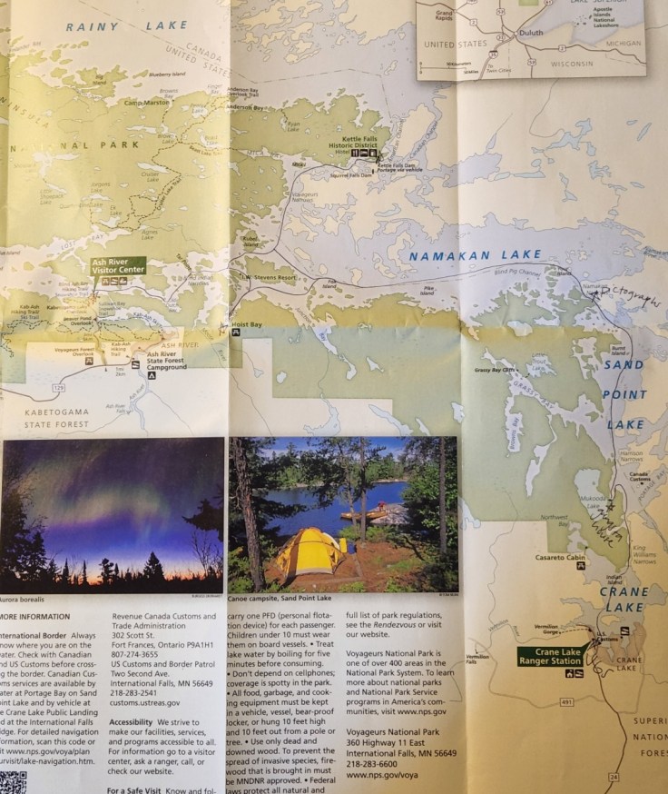 Emily was kind enough to trace our boat path in pen on my Voyageur National Park map. If you zoom in on the partial map photo, you can see where our journey started at Voyageurs Guide Service dock in Crane Lake at the bottom right.