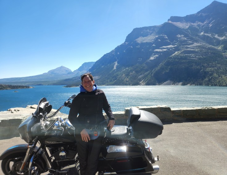 Back in the winter during the planning phase of this trip, I wasn’t able to obtain a Going-to-the-Sun Road vehicle pass, so I made a one-night reservation for a room at the Apgar Village Lodge in the National Park to ensure I’d actually be able to ride the road (the hotel is on the road, so they have to let you on it if you have a hotel reservation). Since I had the reservation anyway, I spent one night indoors, instead of camping outdoors, during my time in West Glacier. As I was sightseeing in the Apgar Village before checking in, I met another female rider. I was riding behind her on an 8-mile section of…you guessed it… ROAD CONSTRUCTION… that was all loose gravel. After talking for a bit, she admitted that she was a novice rider, but by the way she was handling her bike, you never would’ve known it. Like me, Francie had done the ride as an out-and-back instead of as a loop, so we essentially had ridden the Going-to-the-Sun Road twice. Instead of looking frazzled, like I think I did after riding my first mountain passes back in Colorado, she came out the other end smiling from ear to ear. We sat and chatted for a long while- yet another kindred spirit! I’m truly hoping our paths will cross again someday.