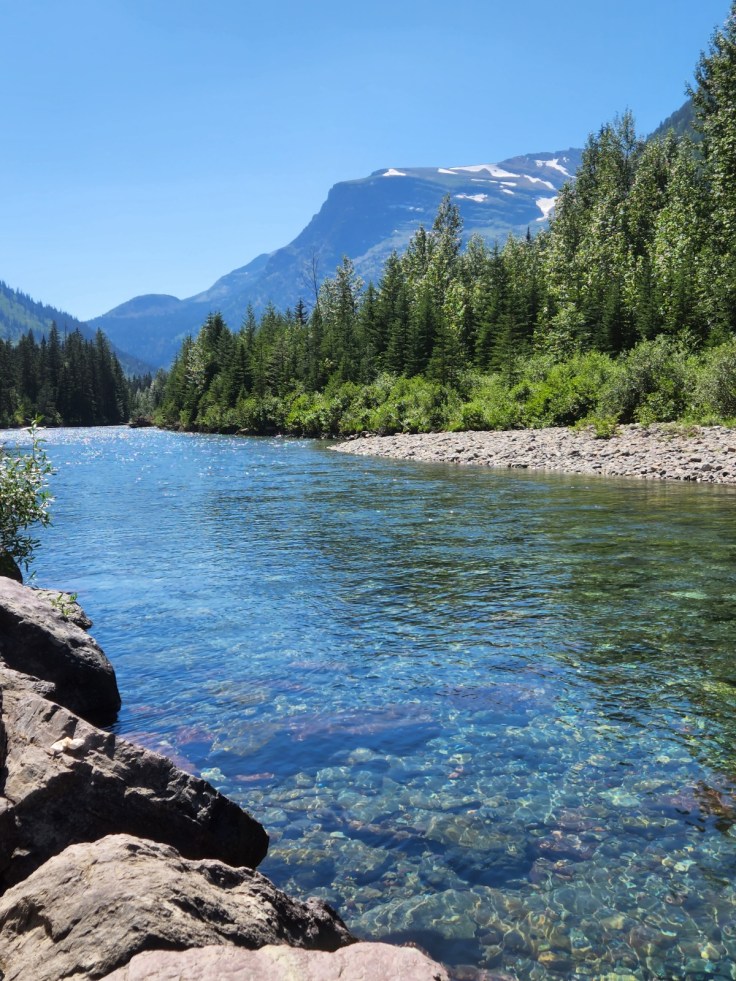 Unlike other National Parks, Glacier only has one road, Going-to-the-Sun, for the public to access the park. That means traffic control is a big deal, especially lately with the huge influx of folks using the parks. In addition to a park pass, you also have to have a vehicle reservation pass to access the road. It’s only $2, but there’s a limited number of passes. There was a window of opportunity several months ago to obtain one, but I was unable to get a pass online during that time, so I had to wait until 8 am once I was here to try to get a pass for the next day. After multiple failed attempts, I finally secured a three-day pass and was feeling pretty grateful for the thinned traffic as I wound my way up the mountains in the crisp, clear morning air.