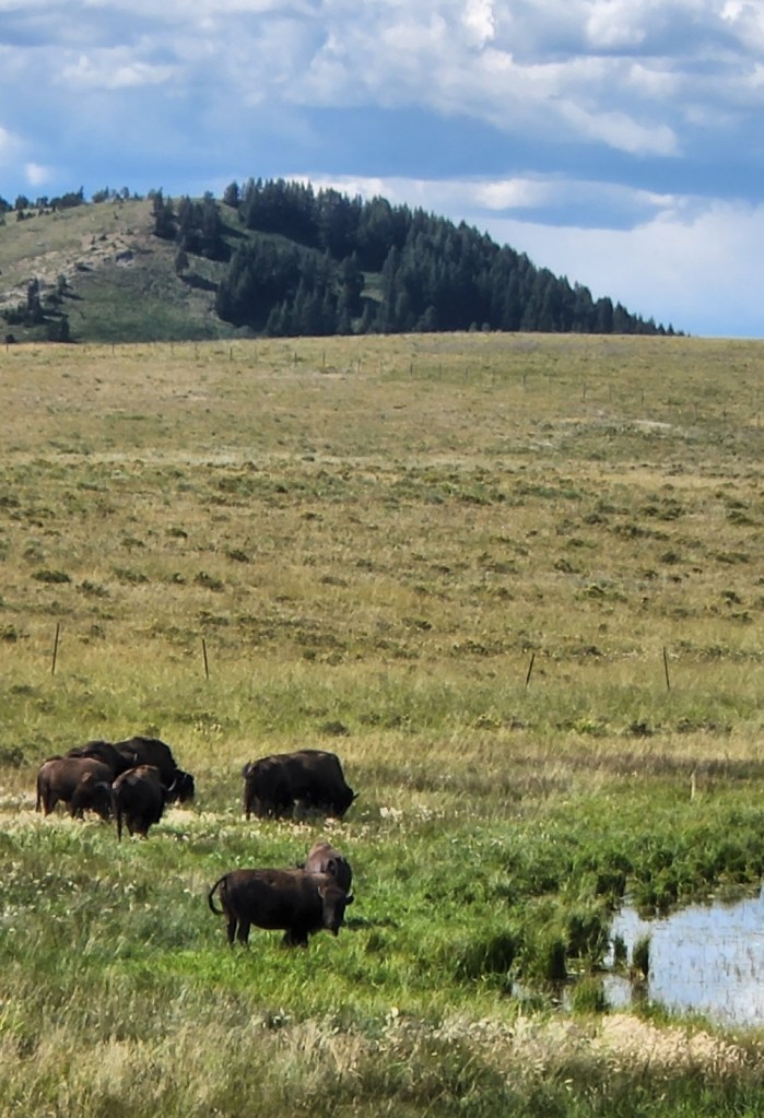 Just a little west of Browning, I came across a sign stating “Blackfeet Nation Bison Reserve” and saw several buffalo lounging around a small lake. Before the arrival of European colonizers, there were an estimated 20-30 million bison in North America. By the late 1800s, there were less than 300 free-roaming bison left in the entire U.S. and Canada. Thanks to conservation efforts and reintroduction of herds, estimates now put the number of bison in North America at a half million. You can read an interesting article about the Blackfeet Nation Bison Reserve published by the Sierra Club HERE.