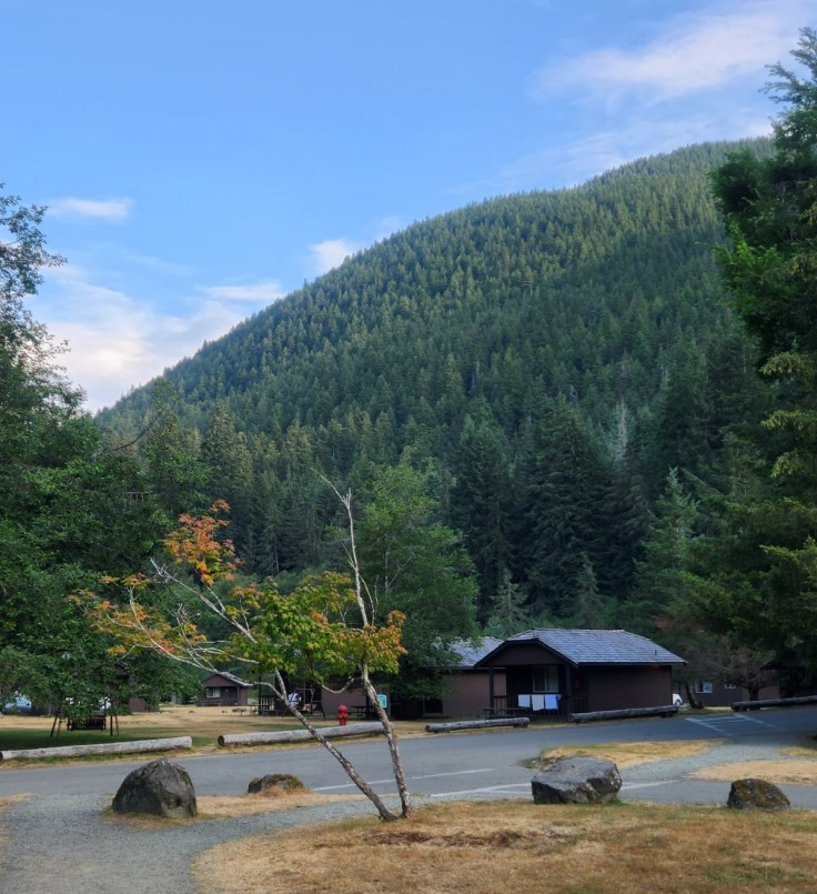My cabin is the one behind the tree. Great, secluded location, tucked deep into Olympic National Park. Unfortunately, the comfort of the bed left a lot to be desired, but the cabin was cozy and had a swing right off the front porch. It was also really convenient to have a restaurant on the grounds since the next closest one was about 30 miles away.