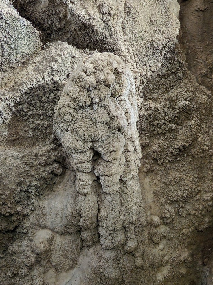 Rough bumpy clusters of calcite formation like this are called popcorn. –NPS website