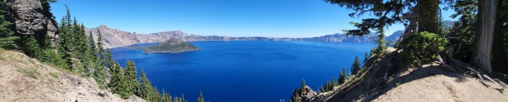 I started my 33-mile, clockwise ride of Rim Drive from Rim Village, which provided an awe-inspiring first glimpse of the lake from Sinnot Memorial Overlook and a short little walk along Discovery Point trail. The brochure says to allow 2-3 hours to travel around the lake, but I took three times that long to follow the sweeping curves of the caldera wall before completing my circumnavigation of the lake. Simply unbelievable!