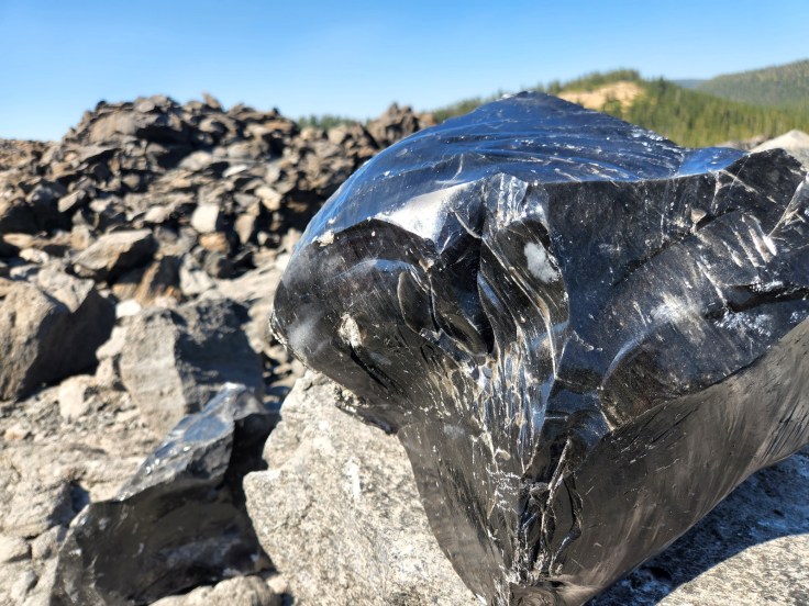 After taking in the great views from Paulina Peak Observation Site, we drove down to walk around the Big Obsidian Flow and see it up close. It’s hard to describe how massive it was. With shiny black glass (obsidian) mixed in with pumice everywhere!