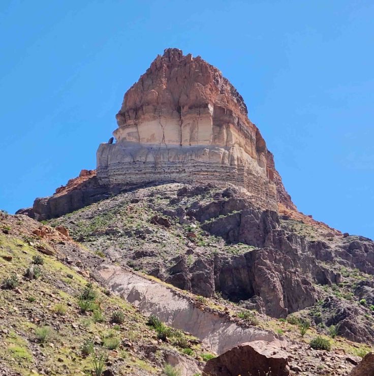 From Santa Elena Canyon, I retraced my route back towards Panther Junction, but detoured onto Chisos Basin Road for the 6.3-mile ride from the desert floor to the Chisos Mountain Visitors Center and lodge, topping out at 5,770 feet. Like many National Parks roads, this one was built by the Civilian Conservation Corps (CCC), between 1934-1942. An info placard along the way stated that work done in the park by the CCC was undertaken by “200 men, most in their teens, and 80% of them Hispanic. For these young men, life in the Big Bend CCC was defined by isolation, desert heat, strict rules, and backbreaking work.” A stark reminder that my ability to access this beauty came with a price.