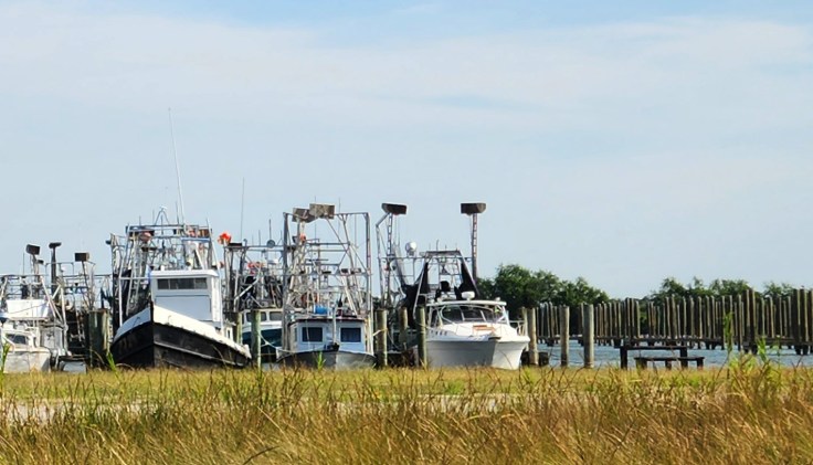 Shrimp boats docked at a safe harbor in Empire, LA.