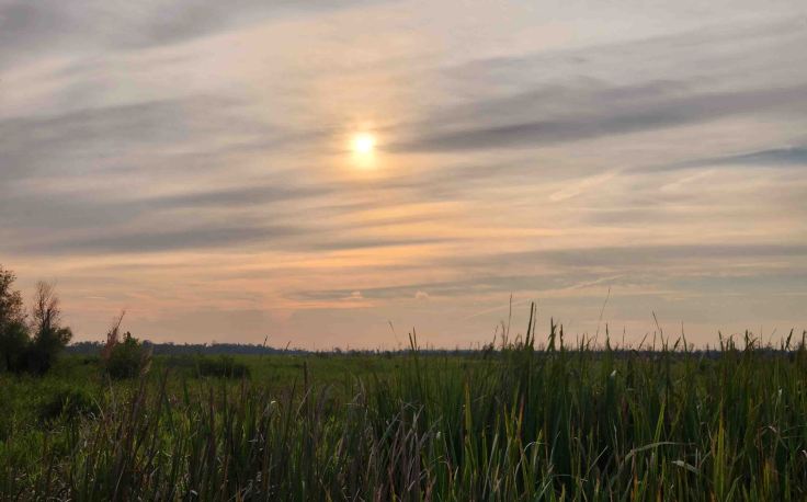 Sunrise over the marsh that separates LA-182, on the outskirts of Houma, from Lake Fields, west of Lockport, LA.