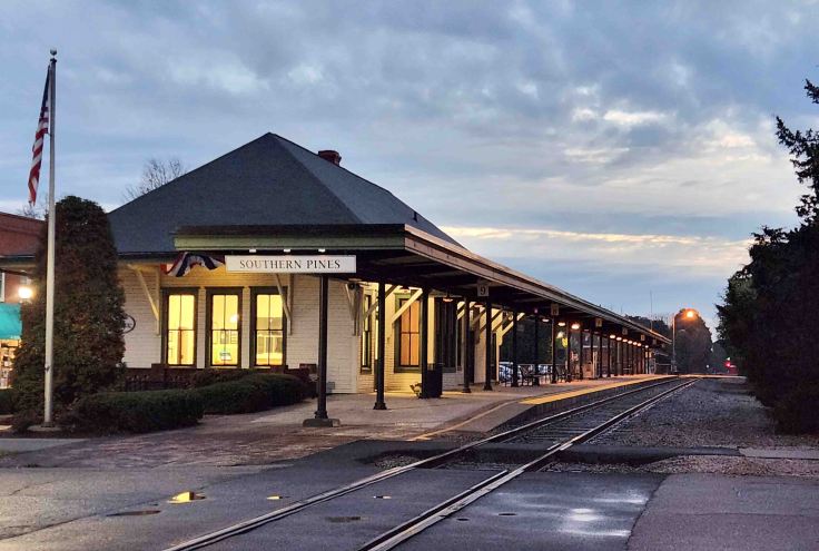 I could feel the rumbling of the ground before I heard the warning horn that the train was approaching the first railroad crossing on the southern end of downtown Southern Pines. I stood on the platform in the pre-dawn morning light and waited for the Silver Star to slow to a stop at its second North Carolina stop on its way from Miami to New York. I had been wanting to take this Amtrack route for a trip to Washington DC for quite some time, so when I started arranging a leisurely trip to the DC area to visit my friend Bridie, I finally had the perfect excuse. No sitting in traffic or trying to find a metropolitan parking spot – it was a great way to travel to our nation’s capital!