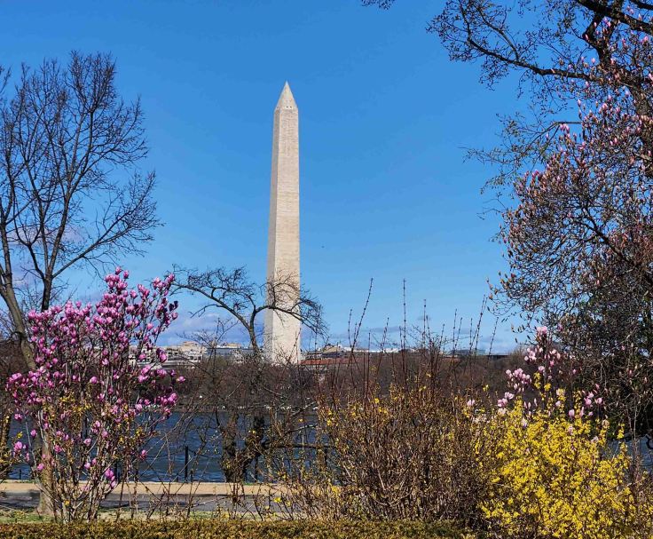 Although our first day of sightseeing was frigid, the weather cooperated for the rest of my visit and even provided lots of blooming colors. The Washington Monument is just as beautiful in the daylight as it is lit up at night.