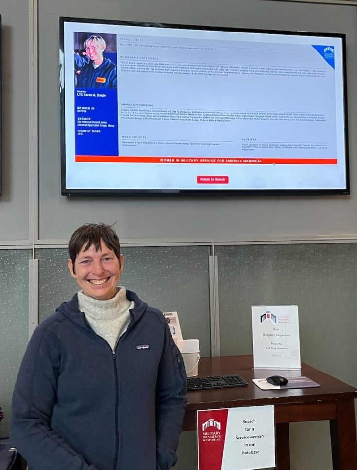 We visited the Military Women’s Memorial, which sits right near the entrance of Arlington National Cemetery. The Memorial maintains a registry that preserves the history of women who have defended this country – both past and present. If you, or a woman that you care about, has served in the U.S. Armed Forces, please consider entering that service into this interactive database. Bridie pulled up my register entry on the big screen in the memorial, but the whole database is available online for registered users.