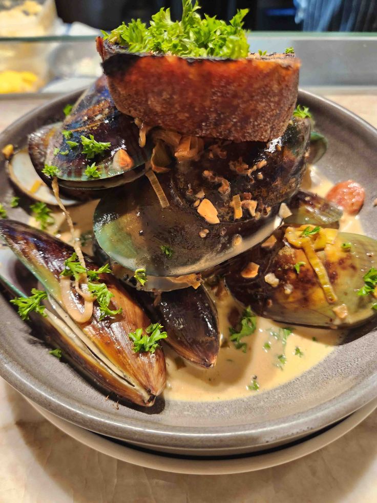 Green-lipped mussels are indigenous to New Zealand and can be found on many restaurant menus. I was lucky enough to eat them a couple of times before an algae outbreak forced a ban on harvesting them at the end of my trip. These were at Shuckers Brothers in Auckland’s Viaduct Harbor.