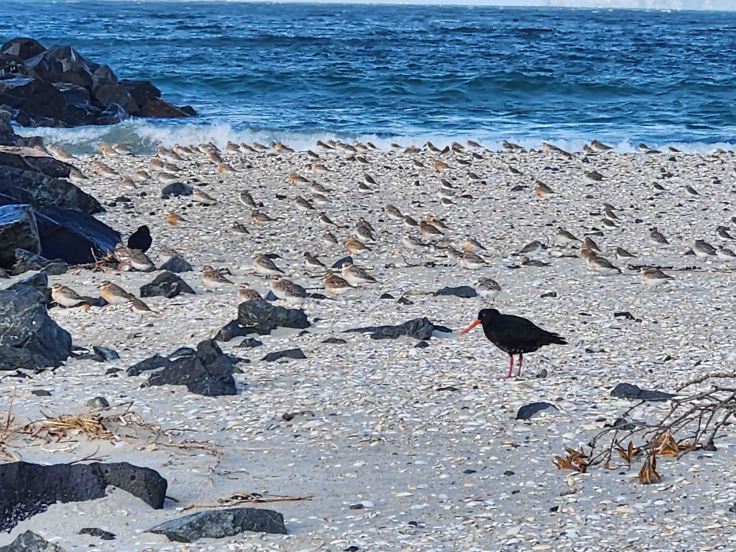 Thanks to my Cornell Lab Merlin bird ID app, I was able to identify 14 lifer birds (first time I’ve seen that species), including the Variable Oystercatcher (the big black bird with the orange beak) and the Double-Banded Plovers and Red-Breasted Dotterels all facing into the wind at Omaha Beach. I saw a meme on social media once that stated “One day you’re young and carefree, the next you’re like ‘Is that a Tufted Titmouse at my birdfeeder?” Yep, that accurately describes me!