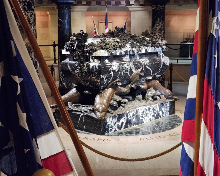 In the basement of the Cathedral lies the remains of John Paul Jones, the first Navy American war hero and considered the “Father of the American Navy.” According to numerous placards near the crypt and in the museum, he was born in Scotland and first went to sea at the age of 13. By the time he reached 21, he was the master of a merchant vessel. He immigrated to the U.S. and earned a commission in the Continental Navy. During his commands of numerous vessels, he captured two British ships in English waters, and received the first salute to the stars and stripes from a foreign power. After America gained its independence, he served with the Russian navy and was appointed a U.S. representative. He died at the age of 45 in France in 1792, where he was laid to rest until his remains were interred in this crypt in 1906.