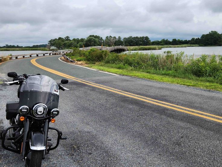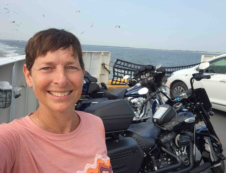 I rode down to Lewes, Delaware, where I caught the 1.5-hour ferry across Delaware Bay to Cape May, New Jersey. My bike ran great during the 60-minute trip to the ferry terminal, but when the deckhand pointed to me to load my bike on the ferry ahead of all the cars, it wouldn’t start (I was the only bike on that ferry, this pic is of the ferry ride back to Lewes, DE from Cape May, NJ which had one other rider). I had power, but nothing happened. Finally, on the 4th or 5th try with all the four-wheel drivers impatiently looking on, my bike started and I rolled onto the ferry and parked near the bow. I suspected that the thorough drenching that my bike and I experienced the day before might have shorted out a circuit somewhere, so I called Mike, my phone-a-friend motorcycle expert, for guidance. Within 30 seconds, he diagnosed that the neutral safety switch had shorted out, so I needed to follow the correct start-up procedure and put my bike in neutral before pressing the starter switch. Yes, I’m lazy and just pull in the clutch when starting the bike instead of putting the bike in neutral. As usual, he was right and saved my a$$!