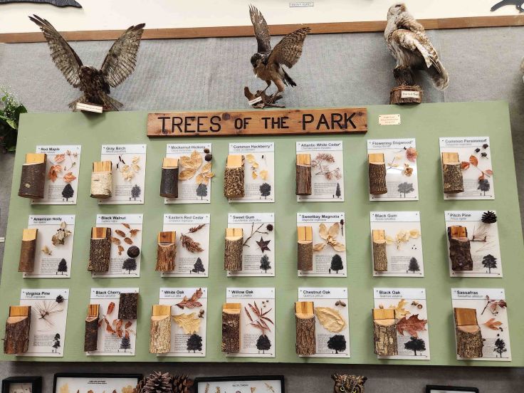 I rode several miles on the Bayshore Heritage Byway before transitioning over to New Jersey’s Pine Barrens Byway. After always having had a strictly urban perception of New Jersey, I was stunned by the beauty of the Pinelands National Reserve. Called “pine barrens” by early settlers because they couldn’t grow traditional crops in the sandy, fast-draining, acidic soil, this area is anything but austere. I rode through forests of pitch pine, oak, and Atlantic white cedar as well as cranberry bogs (though it was too early to see any cranberries), tea-colored rivers, meadows, white sand, and a few villages. I stopped by the visitors center at Estell Manor County Park and was really impressed with this Eagle Scout project showcasing native trees displayed in their education center. So much to see and learn!