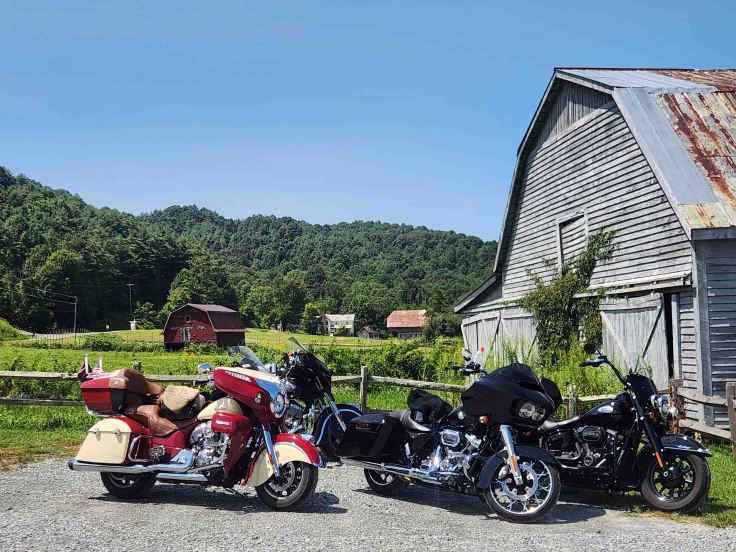 Farmland in the foothills of Beech Mountain behind the original Mast General Store in Valle Crucis made a perfect backdrop for our Harley-Davidson and Indian herd.