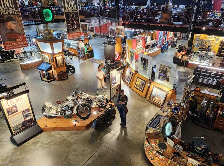 Opened in 2002 by Dale Walksler, this 38,000 sq ft museum is chock full of vintage Harley-Davidson, Indian, and several other brand motorcycles; most of which still run. In fact, while we were in the museum, staff started a 1931 Indian Four, living up to its label as “The Museum that Runs!” The museum includes a restoration shop that was home to hundreds of historic motorcycle restorations by Dale and his staff. Dale was a former Harley-Davidson motorcycle dealer, a member of the American Motorcycle Association and Sturgis Motorcycle Halls of Fame, who devoted his life to the advancement of antique motorcycles and their history. Sadly, Dale passed away in 2021, but there is a YouTube channel where you can view videos of his Discovery Channel show, “What’s in the Barn?” as well as chronicles of amazing antique motorcycle restorations.