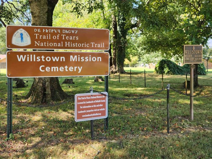 Fort Payne is home to several Trail of Tears historical sites, such as Willstown Mission Cemetery, which sits on the site of a former mission/school for local Cherokee, established by leaders of the tribe in 1823. The mission/school was shut down after the forced removal of the Cherokee (now known as the Trail of Tears to Oklahoma) in 1838. The cemetery is thought to contain the remains of 41 Cherokee who died in camp at Fort Payne as they were held for their forced removal. Another area historic Trail of Tears site is the Fort Payne Cabin, which is made up of remains of one of 20 removal forts (stockades) established in Alabama, Georgia, and North Carolina, that was the confiscated home of a Cherokee known as Spirit the Preacher (aka John Huss).