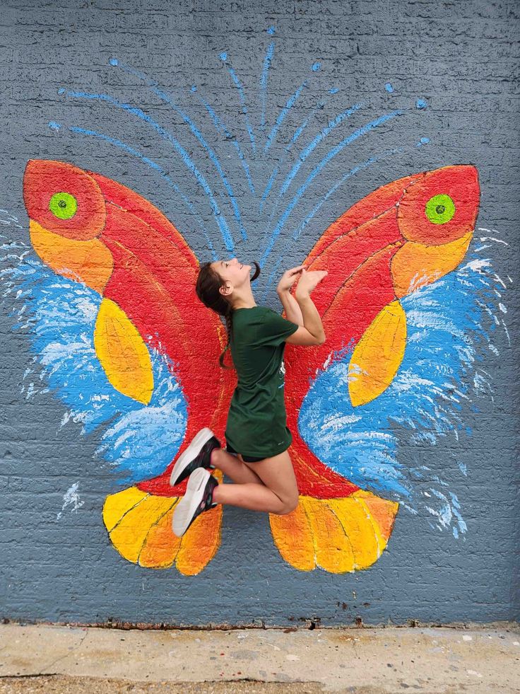 Jenney and I coordinated for this awesome action photo in front of one of Houma’s many fun murals 😊