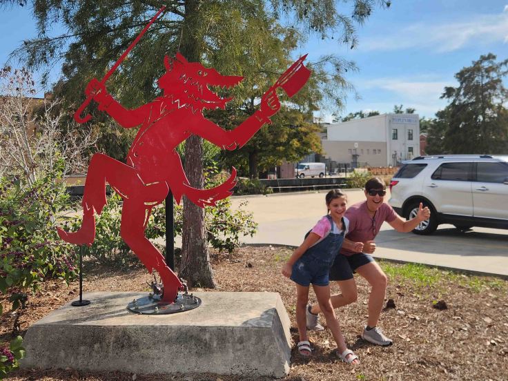 Me and Jenney running from the Rougarou, Louisiana’s version of a werewolf and used to scare little kids into behaving. He looks more jovial than scary in this art though!