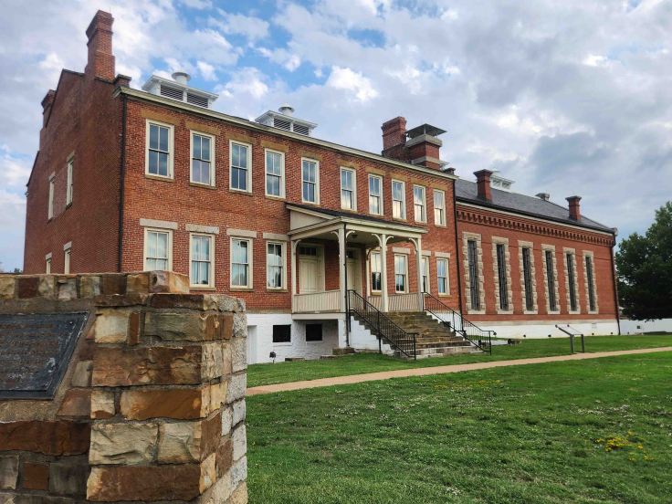 I turned north at the end of the Talimena Scenic Drive and rode a couple of hours through Oklahoma before crossing back into Arkansas to visit Fort Smith National Historic Site. The original fort was built in 1817 in response to the westward push of the U.S. boundary into Indian Territory after the Louisiana Purchase. The continued forced resettlement of numerous eastern tribes past the western banks of the Mississippi River caused much strife amongst newly arriving, and already established, indigenous nations.