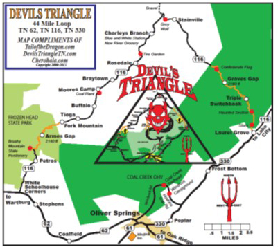 I was excited to finally get to ride the 44-mile loop north of Oak Ridge known as the Devil’s Triangle. The gorgeous sweepers, fun twisties, and tight switchbacks through the mountains of the Cumberland Plateau did not disappoint!
