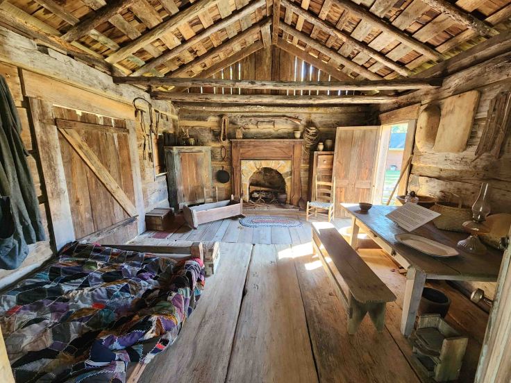 This little cabin, built circa 1800 on the Clinch River about 40 miles northeast of the museum, belonged to Wes Arnwine and wife, and is listed on the National Register of Historic Places. This structure serves as an example of what a typical Appalachian home looked life before the days of electricity. The Arnwine log cabin is one of 35 on the grounds interspersed amongst barns, farm animals, churches, schools, and gardens. (Museum of Appalachia website)