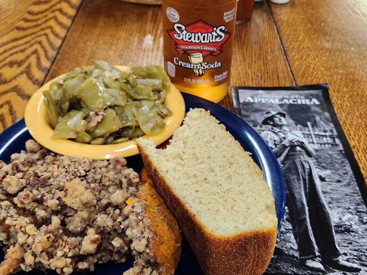 I enjoyed a Southern Appalachian style meal of green beans, sweet potato casserole, cornbread and a cream soda (I like side dishes more than fried chicken!) while listening to local musicians pickin traditional mountain instruments. It was such a great stop!