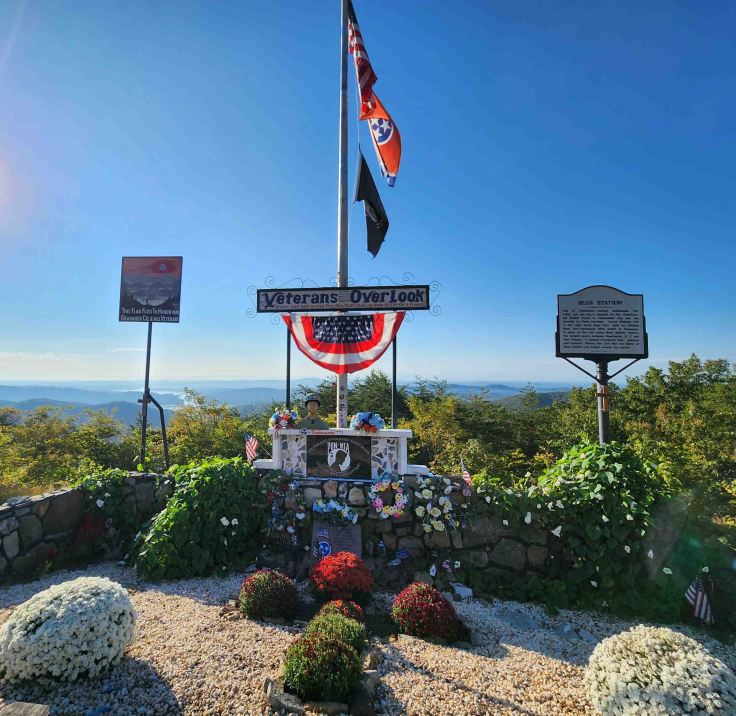 We stopped long enough at the Cumberland Gap National Historical Park Visitor Center to watch a couple of films covering the history of the area before riding up to Pinnace Overlook (click HERE to watch a 12-minute history of the area). From Indigenous peoples, to Daniel Boone and the accompanying enslaved people who helped blaze a frontier trail, to the Union and Confederate soldiers who alternatingly held the area, there are many perspectives to the history of this gap in the Appalachian Mountain range. Crash and I walked to the tri-state marker and are standing at the intersection of Kentucky, Tennessee, and Virginia in this photo.