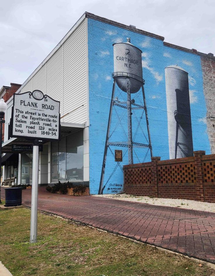Moore County, NC is home to many talented artists, whose work can be seen on the county’s mural trail. This one is in downtown Carthage and depicts the town’s iconic horse and buggy logo on an old 1920s stove top water tank.