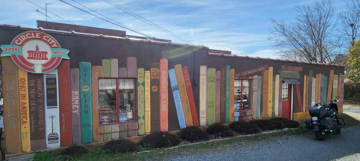 To repay the generosity of Circle City Books and Music for their supper club book gifting, I decided to ride my bike up to Pittsboro a few days later to patronize the establishment. The building that houses the used book store boasts an impressive mural depicting numerous books either written in North Carolina, or by a North Carolinian. Looks like my reading list just grew!