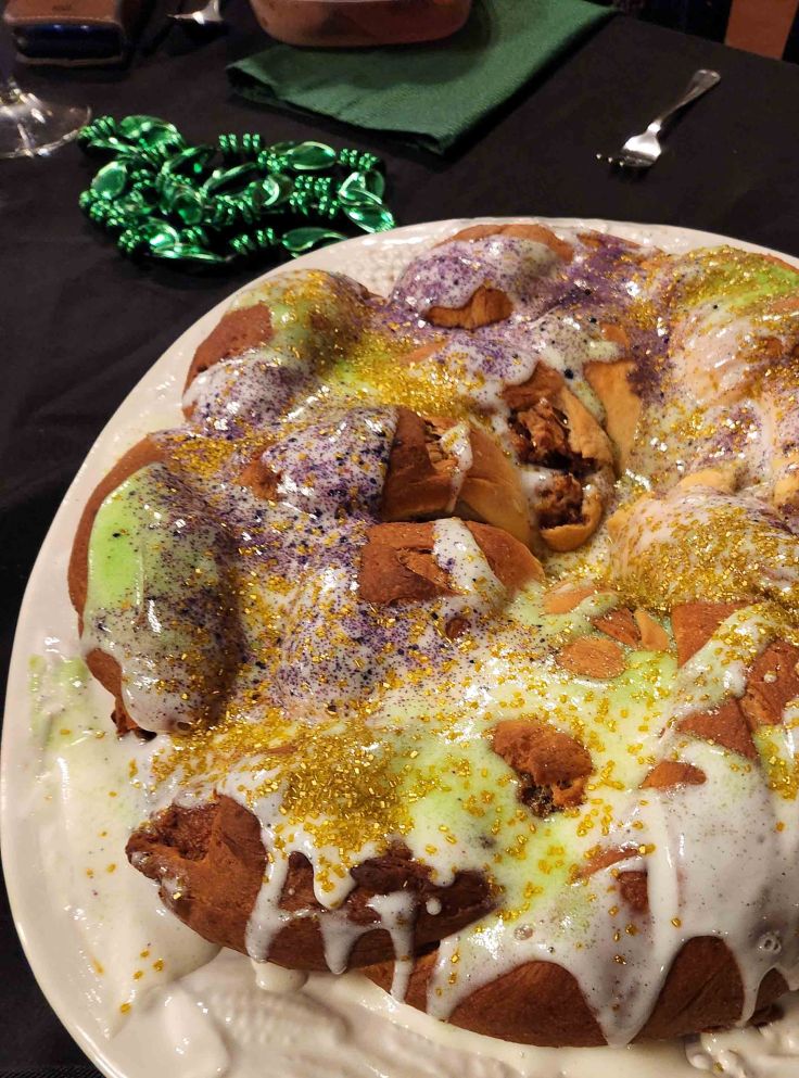 Clare’s version of Louisiana’s iconic King Cake, a cross between a coffee cake and cinnamon roll, was as beautiful as it was tasty. From the Epiphany, or Three Kings Day, on January 6 until Fat Tuesday, this Mardi Gras cake symbolizes the biblical story of the gifts being brought to the baby Jesus by three kings. True to tradition, there was a tiny plastic baby baked into this cake, representing the bestowment of luck and prosperity to the fortunate person who finds it in their slice.
