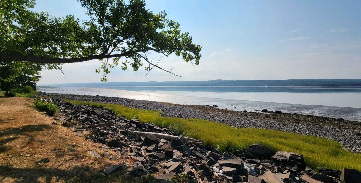 My heritage tour began at the birthplace of Acadian culture, Port-Royal National Historic Site in Nova Scotia. A “reconstruction of the Habitation, one of the earliest European settlements in North America where Samuel de Chaplain lived in 1605.” The Annapolis River Basin was given the name Port-Royal and is where the French continued contact with the First Nation of Mi’kmaq (pronounced MIG-mah) and established trade. The Mi’kmaq-French alliance was crucial to the survival of the newly arrived French traders and the establishment of l’Acadie colony. Economic exchange and alliances against enemies (specifically, the British and other Indigenous peoples) fostered a partnership between the two groups, versus a subjugation of one group by the other (seemingly evidenced by the Mi’kmaq’s sharing of survival techniques and cultural exchanges). This respectful relationship facilitated the expansion of a trading post to a full-blown colony. Though there are two origin stories for the name “l’Acadie,” the most plausible theory is that the name is derived from a Mi’kmaq word rendered in French as “cadie,” roughly meaning a “fertile area.” (UofMaine) The English version of l’Acadie is Acadia.