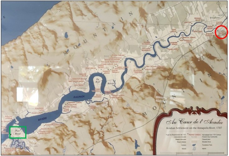 Born in France, my 10th great-grandfather, Oliver Daigre (D’Aigre/Daigre evolved to Daigle by the third Acadian generation) arrived in Port Royal, the original settlement of Acadia in New France, sometime around 1663, at roughly 20 years of age. Though his place of birth is unknown, the French surname D’Aigre signifies a person that comes from the town of Aigre in Charente, France – approximately 50 miles from France’s western coast. I could find no records to verify it, but Oliver may have been an engagé, or indentured servant, as that was an effective method of recruiting young immigrants at the time. An engagé was a male, typically single and in his early twenties, who received, room, board, clothing, and a small salary, from which he would reimburse his employer for passage to Canada, in exchange for signing a 36-month contract of servitude. Many engagé returned to France at the end of their contract, but a small percentage stayed to make a life for themselves in New France. (Rootsweb, French-Canadian Geneologist)